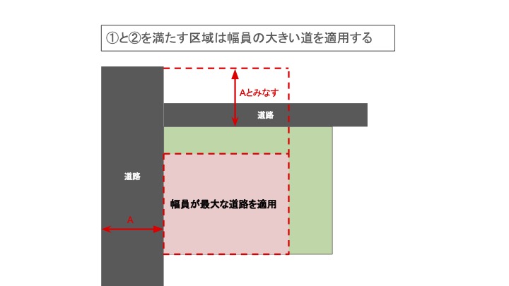 幅の狭い方の道路を幅の広い道路とみなすことができることがあります。